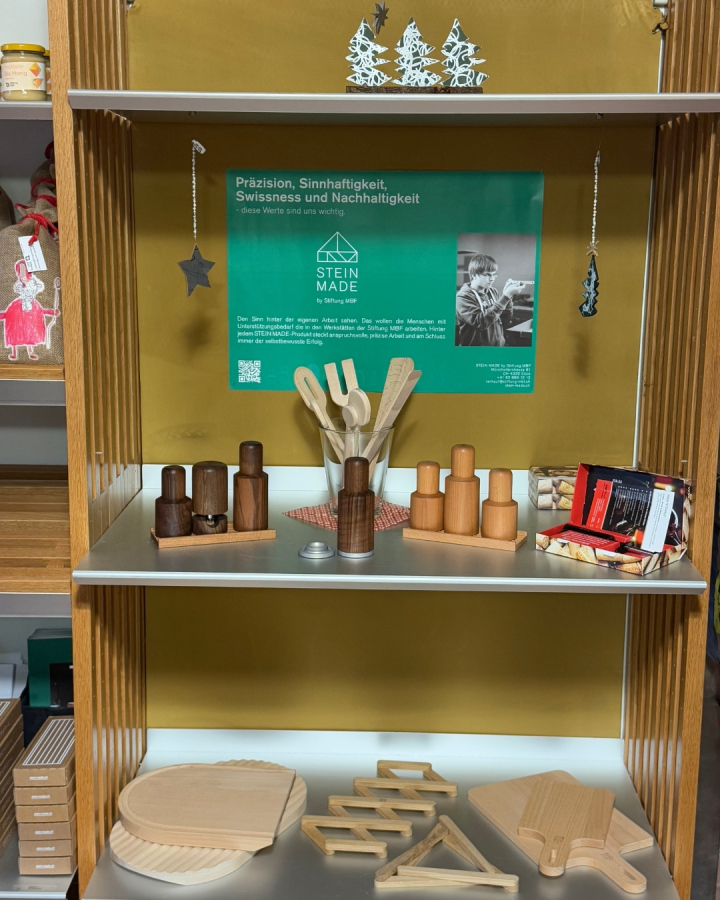 Entdecken Sie im Lädeli Buche in Stein stimmungsvolle Weihnachtsgeschenkideen! Liebevoll Handgemachtes aus den Ateliers und Werkstätten der Stiftung MBF von Menschen mit Unterstützungsbedarf. Jedes Produkt verbindet Kreativität, Qualität und soziale Wirkung.